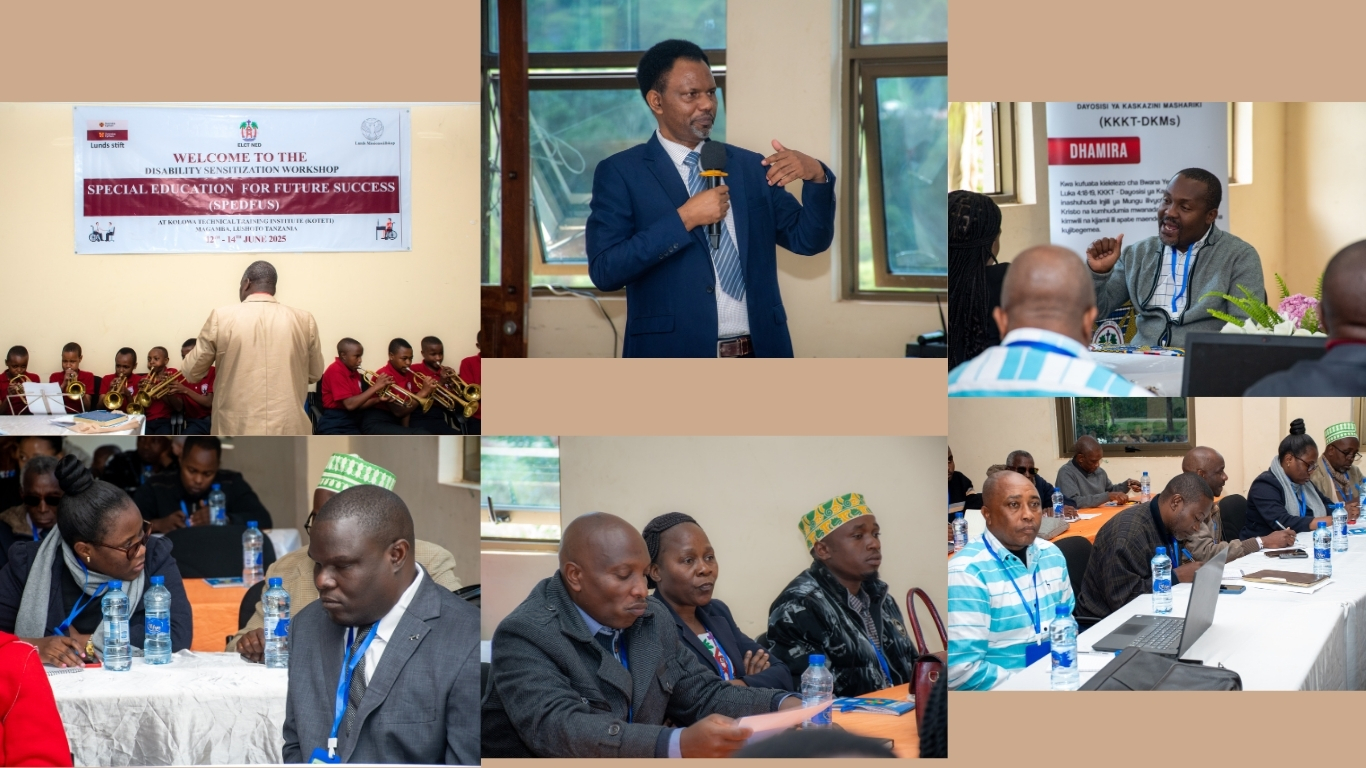 Wito huo umetolewa na Msaidizi wa Askofu Mteule wa KKKT DKMs Mch. Frank Mntangi wakati alipokua akitoa hotuba yake katika ufunguzi wa warsha ya Elimu maalum yenye dhamira kuu ya "Elimu maalum kwa mafanikio ya baadae" inayofanyika katika ukumbi wa mikutano wa Taasisi ya Elimu ya Kolowa Technical Training Institute (KOTETI) iliyopo katika Wilaya ya Lushoto Mkoa wa Tanga.