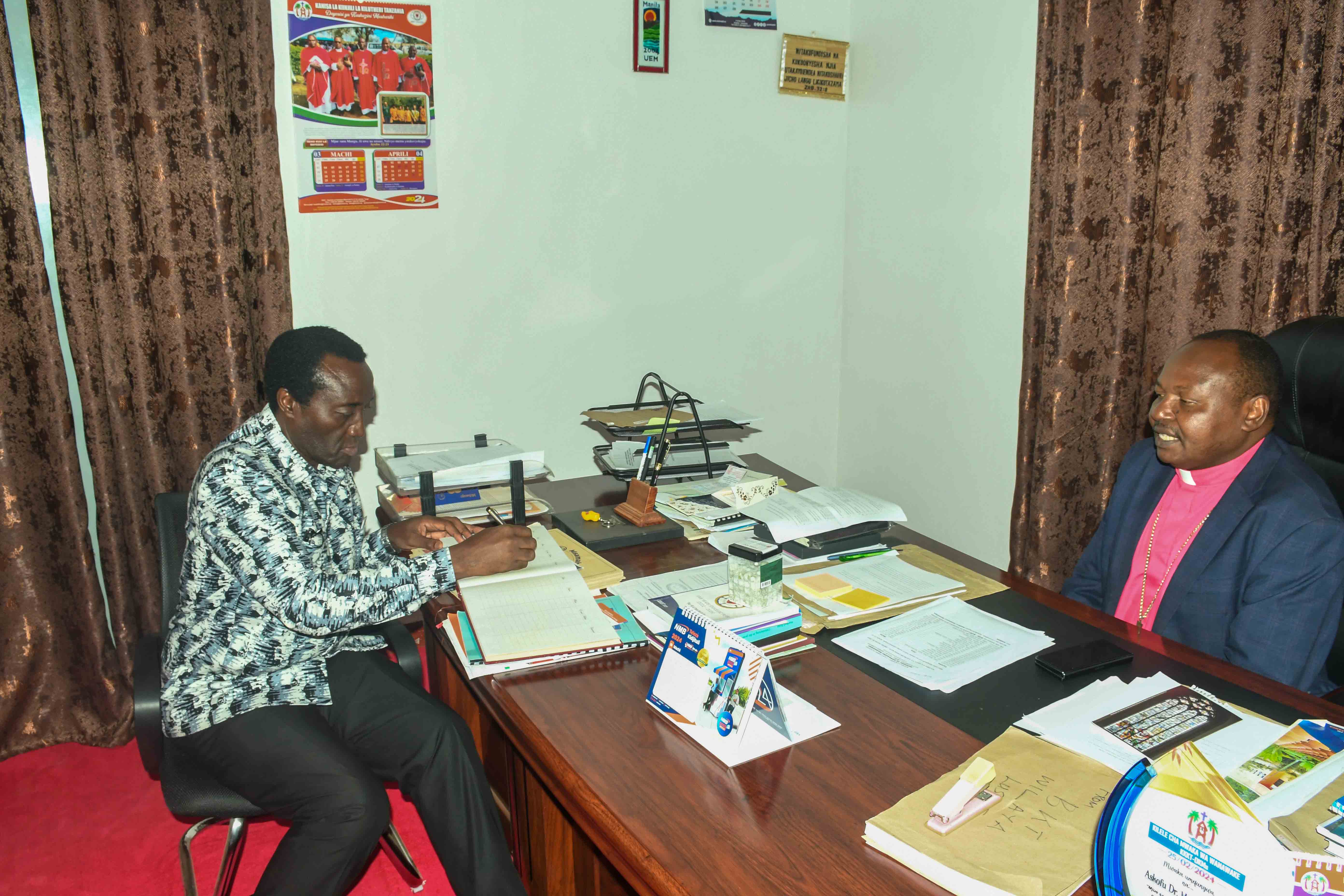 Pamoja na hayo Mwl. Christopher Mwakasege akiambatana na baadhi ya wajumbe wa huduma ya MANA, amepata wasaa wa kutembelea Makao Makuu ya KKKT-Dayosisi ya Kaskazini Mashariki na kupokelewa na mwenyeji wake Baba Askofu Dkt. Msafiri Joseph Mbilu ambapo mara baada ya mazungumzo yao Mwl. Mwakasege alifanya maombi pamoja na Watumishi wa Ofisi Kuu.
