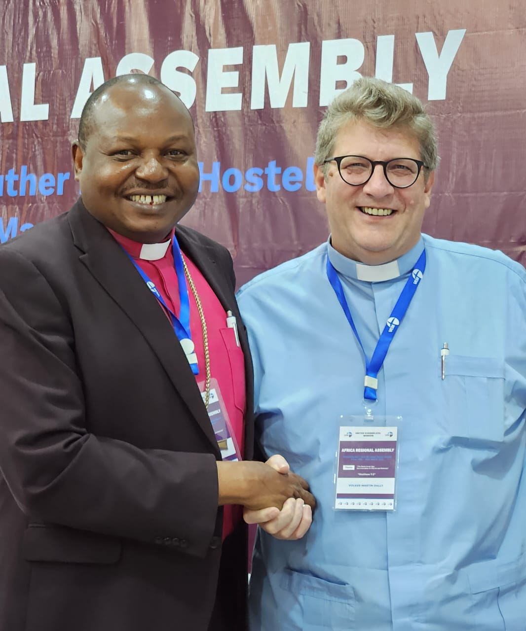 FROM LEFT Rev. Dr. Msafiri Joseph Mbilu, the Bishop of ELCT-North Eastern Diocese, and Rev. Volker Martin Dally the UEM General Secretary. participated in the UEM Africa Regional Assembly,from 20th to 26 March 2023.