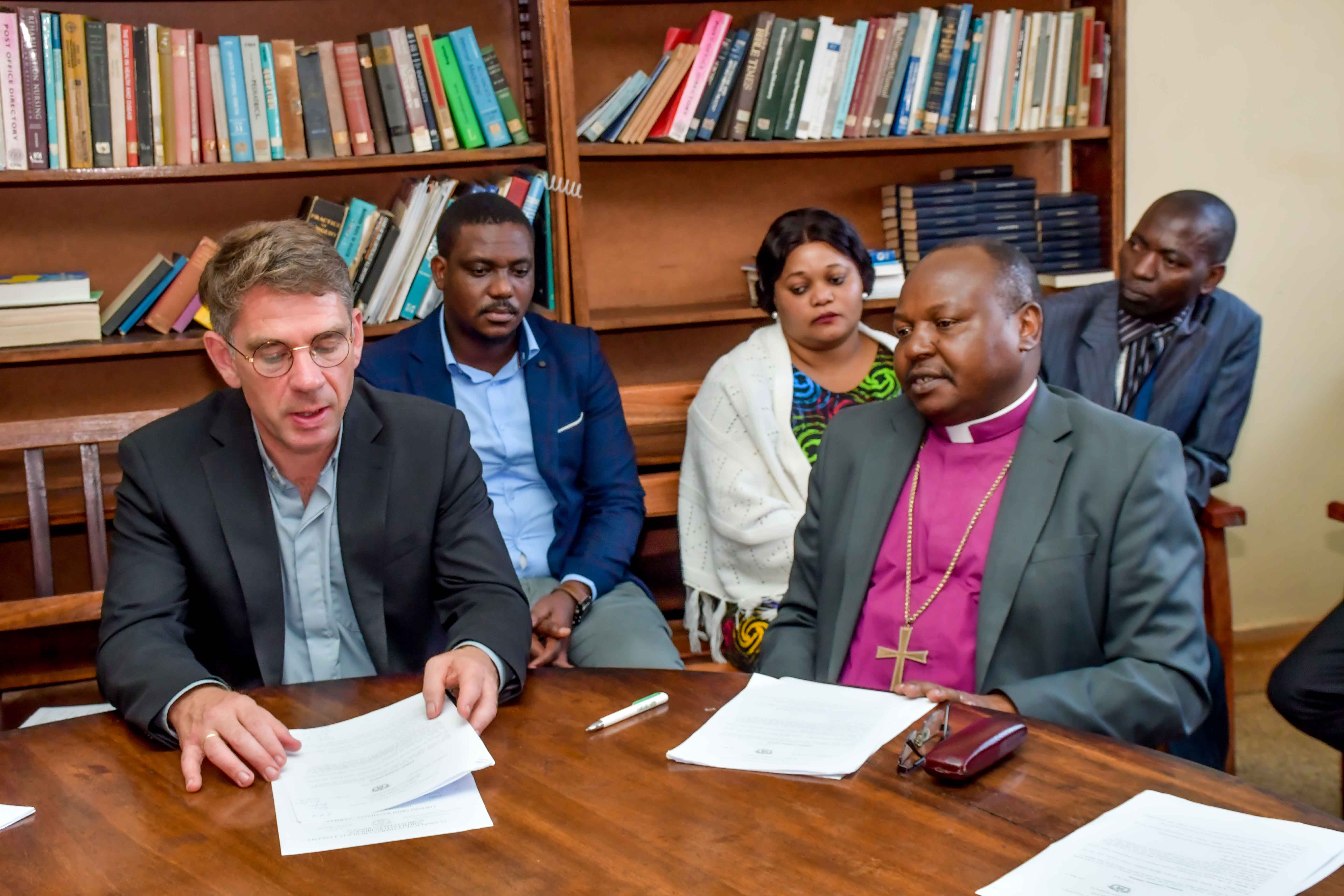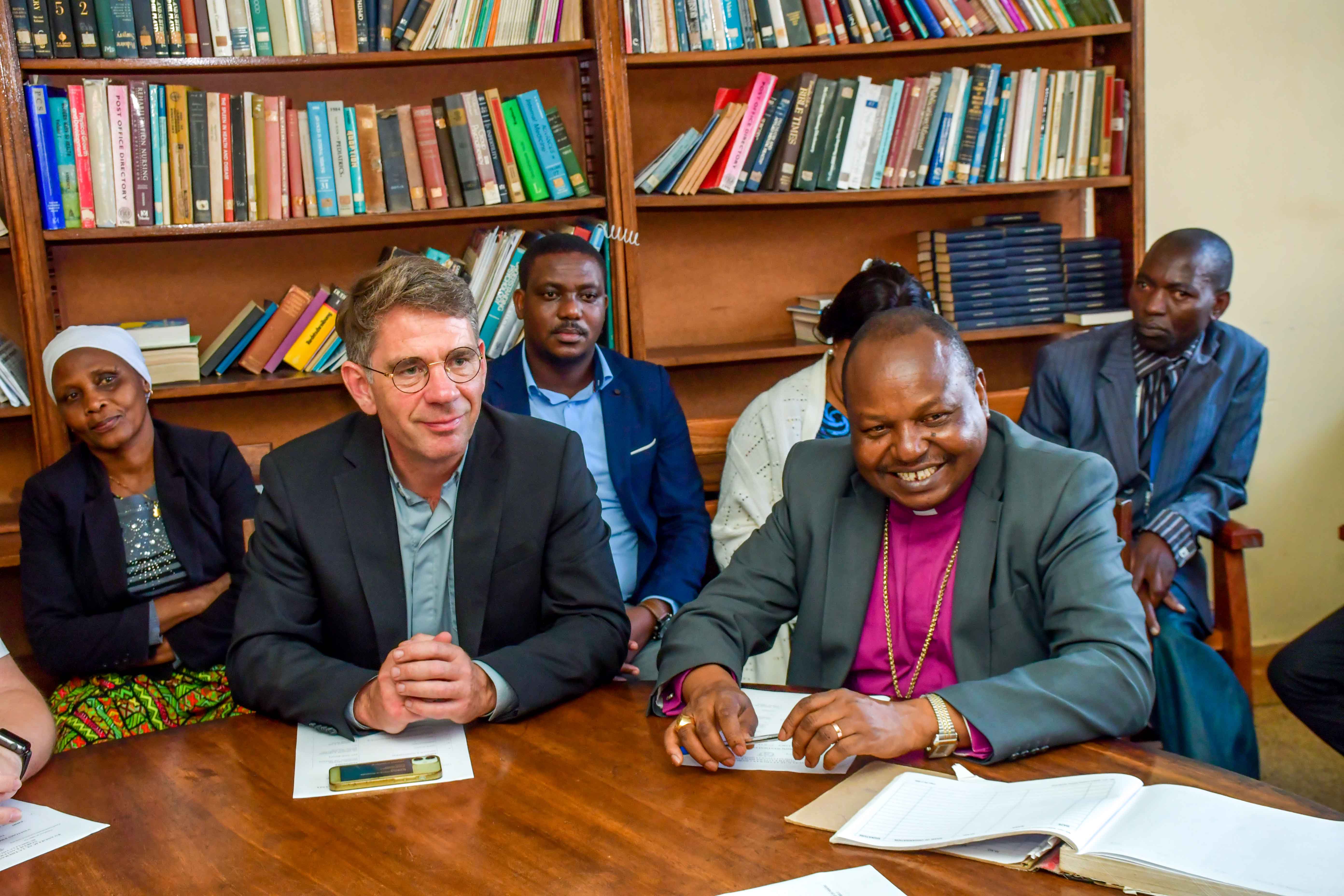 Askofu wa KKKT-Dayosisi ya Kaskazini Mashariki, Mch Dkt. Msafiri Joseph Mbilu, akiwa ameongozana na ugeni kutoka Kanisa la Westphalia (Evangelical Church of Westphalia) Ujerumani, unaoongozwa na Mch Dkt. Albrecht Philips.